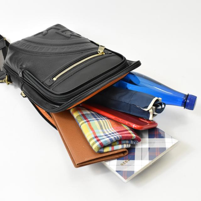 スマートな見た目ながら財布・手帳・スマホ・500mlペットボトルなど、ちょっとした外出に必要な小物をしっかり収納できます。