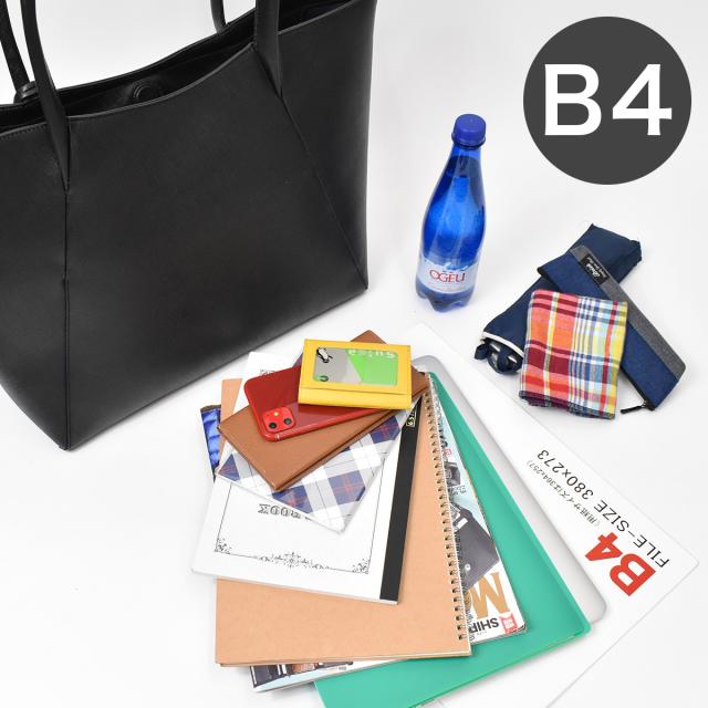 B4サイズまで入る大容量。たくさんの書類やパソコン、小物や500mlペットボトルなどをしっかり収納できるため、荷物の多い方にもオススメです。