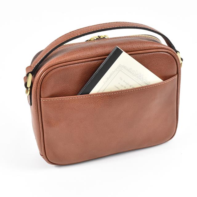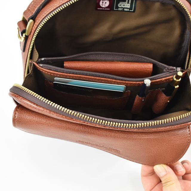 前面にホック式ポケット、メインルームにファスナーポケット・ペン挿し×2・カードポケット×2、背面にオープンポケットを配置しており、小物の整理もしやすいアイテムです。