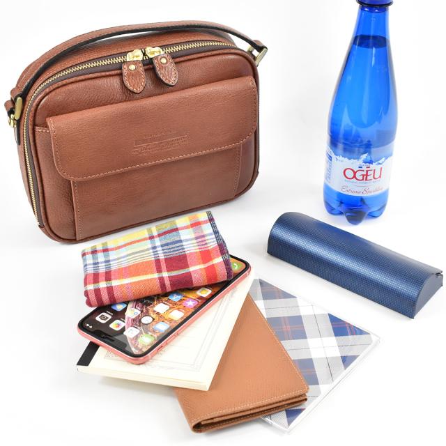 500mlペットボトル、手帳、長財布、スマートフォンなど、外出に必要な荷物をしっかり収納。旅行時のサブバッグとしても活用できるアイテムです。
