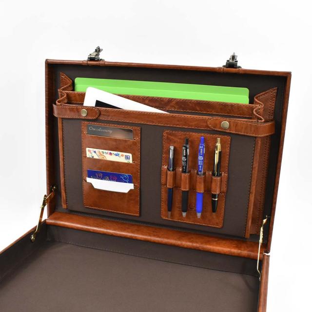 A4サイズをラクラク収納できるサイズ感。書類・手帳・小物類など、ビジネスシーンに必要なアイテムをしっかり収納できます。