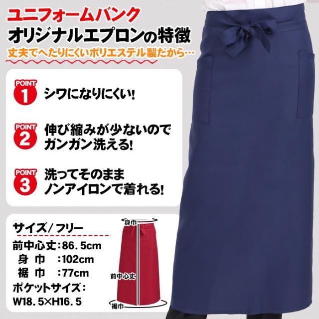 メール便OK ソムリエ エプロン サロン ロング 超撥水 無地 大きいサイズ おしゃれ 前掛け カフェ ソムリエ サロン 業務用 男性用 女性用 男女兼用 ユニフォーム 制服 7色/黒 ブラウン 紺 ワインレッド グリーン バイオレット グレーオリジナルエプロン long メール便可2