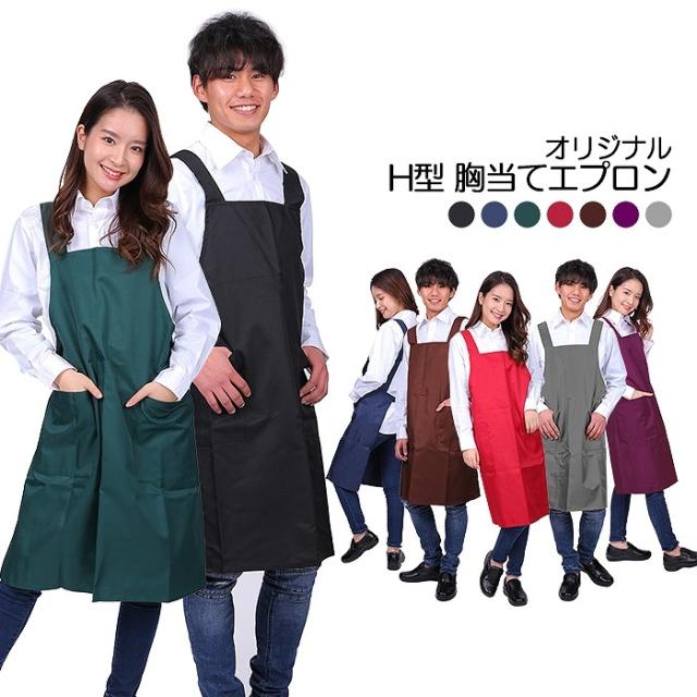 メール便OK エプロン 胸当てエプロンH型エプロン 超撥水 カラー胸当てエプロン 大きいサイス 作業 無地 業務用 シンプル おしゃれ かわいい 男女兼用 00875 オリジナルエプロン 7色/黒 ブラウン 紺 ワインレッド グリーン バイオレット グレー h-muneate メール便可2