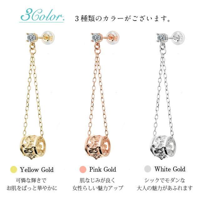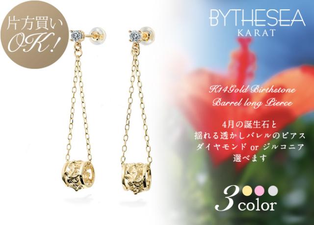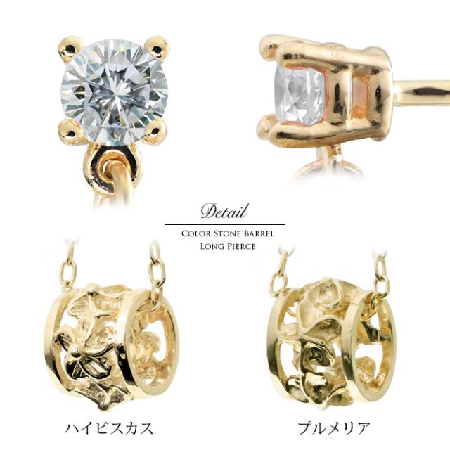ハワイアンジュエリー ピアス 4月の誕生石 ダイヤモンド 透かしバレル チェーン カラーストーン プルメリア ハイビスカス 揺れる 片耳(1個)購入可 K14イエロー ピンク ホワイト 選べる 彼女 妻 女性 レディース プレゼント ホワイトデー 卒業式 入学式 【品番:GE302-4】