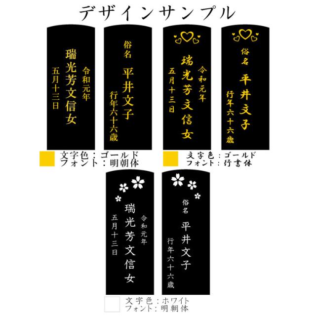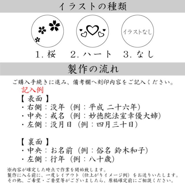 ご注文確定後、こちらからご連絡いたします。その後、位牌に彫刻するお名前・没日・行年などをお送りください。