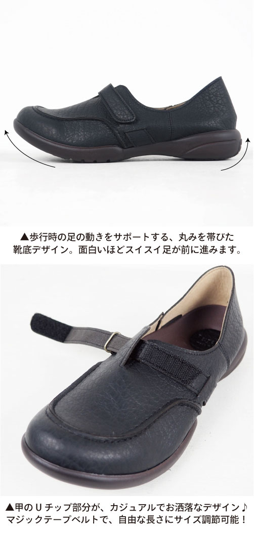 (特徴)疲れない 履きやすい 歩きやすい 痛くない 軽量 軽い ぺたんこ 平たい 平ら ストラップ ベルト ぺたんこ マジックテープ ベルクロ Uチップ マニッシュ 足指 幅広 甲高 安定 血行促進 ローリング歩行 らくちん 普段履き 通勤 仕事 オフィス 立ち仕事 エステ 旅行 育児 カジュアル リゾート