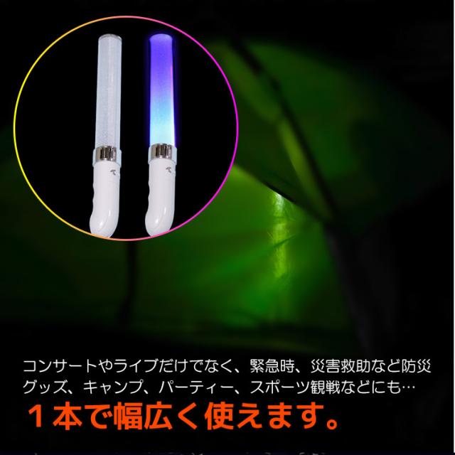 コンサートやライブだけでなく、緊急時、災害救助など防災グッズ、停電時の位置表示、夜釣り、パーティー、スポーツ観戦など、1本で幅広く使えます。