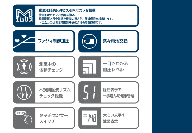 ・動脈を確実に抑えるM形カフを搭載