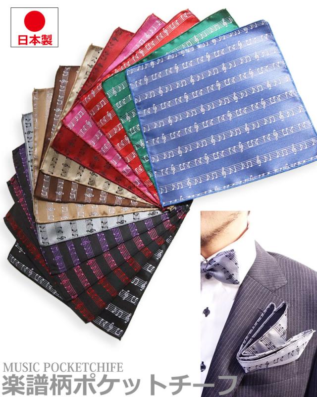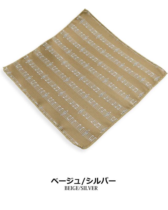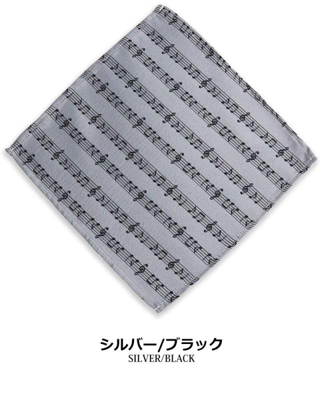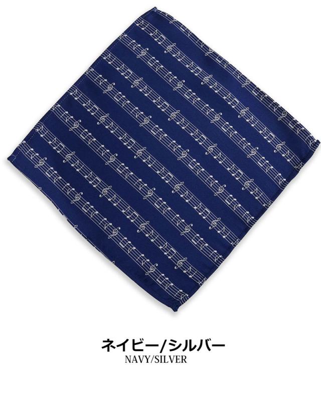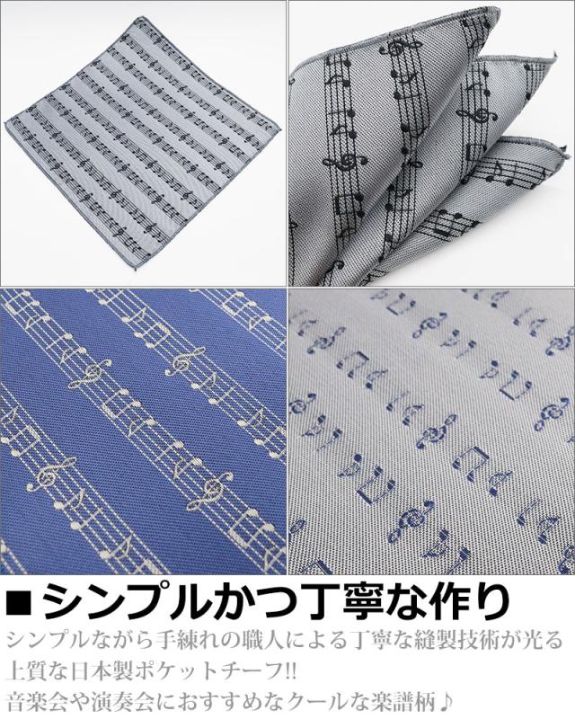 【日本製】楽譜柄 音符柄 ポケットチーフ ハンカチーフ メンズ フォーマル ハンカチ 入園式 卒園式 入学式 卒業式 結婚式 ステージ衣装 発表会