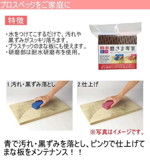 磨きま専家 まな板削りツルツル仕上げセット (MS-84) 日本製 研磨 まな板 木製 プラスチック製 黒ずみ 掃除用具 汚れ落とし キッチン清潔
