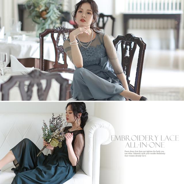 エンブロイダリーレースオールインワン【3183】10代・20代・30代・40代・50代パンツドレス・ドレスカジュアル・服装・袖あり・ブランド・半袖・長袖・七分・薄手・厚手・無地・刺繍・花柄・脚長効果・伸縮性・キレイめ・着やせ・ロング・パンツ・ガウチョ・ワイド・レース・体型カバー・スタイルアップ・小さいサイズ・3Lや4L・かっこいい・即日発送・送料無料・結婚式・婚活・披露宴・顔合わせ・発表会・演奏会・二次会・同窓会・お呼ばれ・食事会・謝恩会・親族・七五三・お宮参り・冠婚葬祭・弔事・女子会・韓国・デート・入学式・卒業式・入園式・卒園式・ママ・ピアノ・マタニティー・セレモニー・セレブ・パーティー
