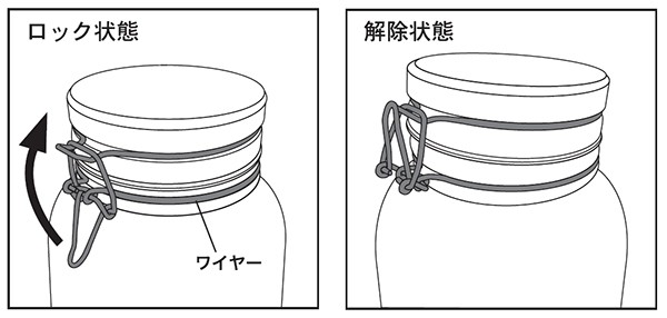 フタ周りのパッキンとワイヤーロックでがっちり密閉できます。中の飲み物を出す時は、ワイヤーロックを解除してから蛇口を開けてください。