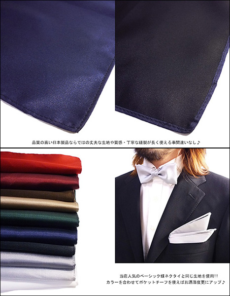 『ポケットチーフ』『ハンカチーフ』『チーフ』『ハンカチ』『ビジカジ』『入園式』『入学式』『卒業式』『卒園式』『結婚式』『お受験』『ステージ衣装』『発表会』『ピアノ』『カジュアル蝶ネクタイ』『おしゃれ』『フォーマル』