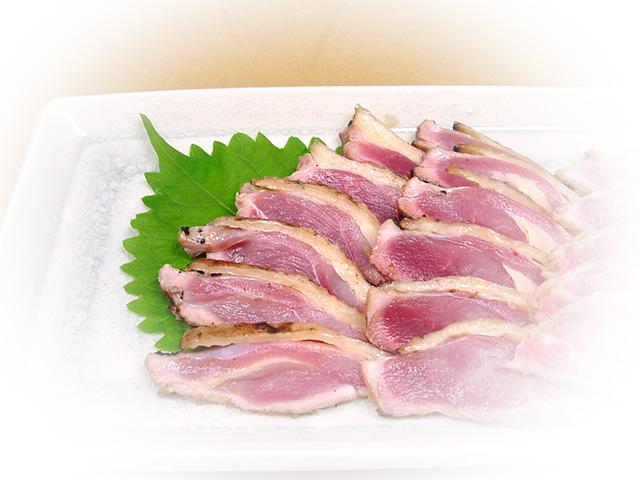 新鮮な九州産の鶏のもも身に塩コショーで味付けして直火で炙り「たたき」に仕上げています。
