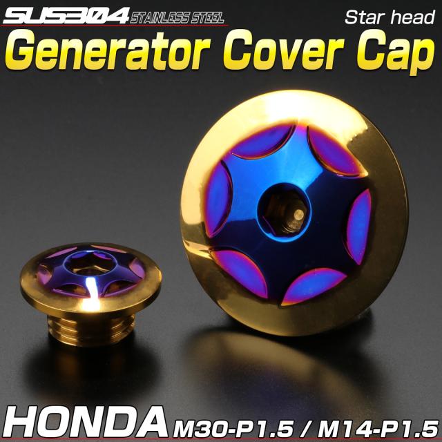ホンダ車用 ジェネレータカバー クランク&ポイントホール キャップセット ステンレス製 スターヘッド チタン×ゴールド TH0306