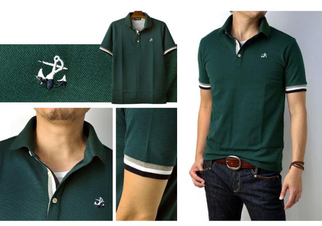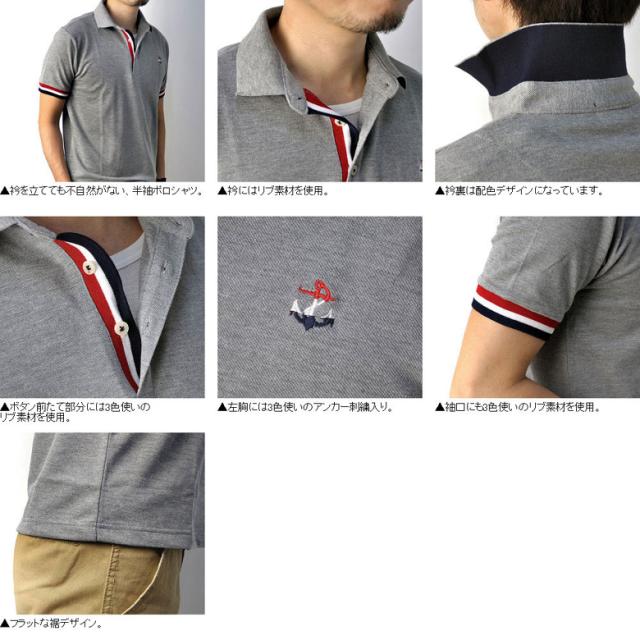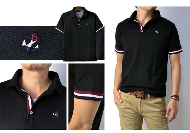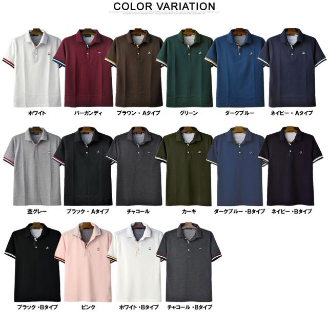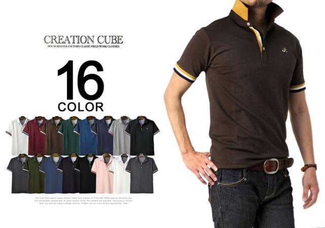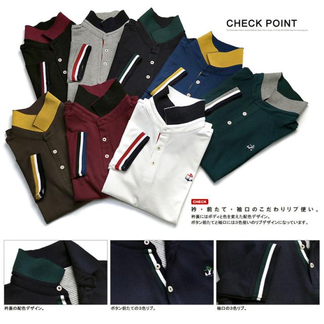 ポロシャツ 半袖 メンズ 衿裏 カラー配色 リブ 立衿 ワンポイント 刺繍 トップス カットソー【A5Q】【パケ1】