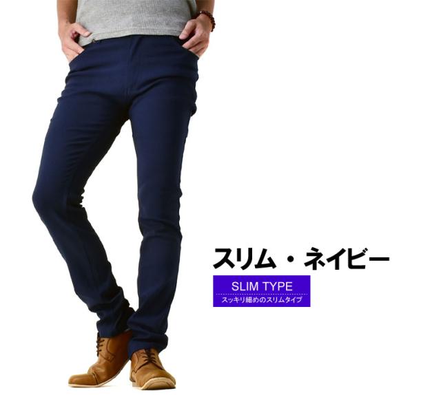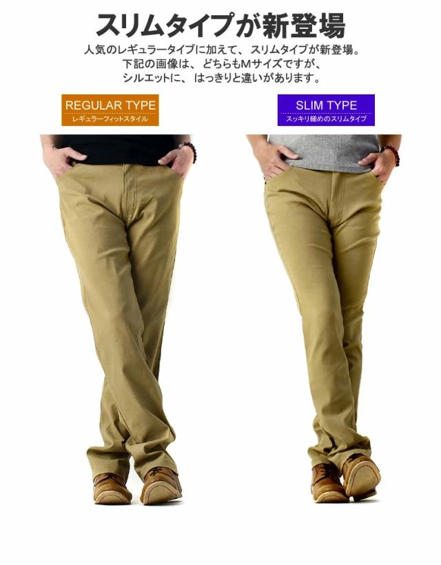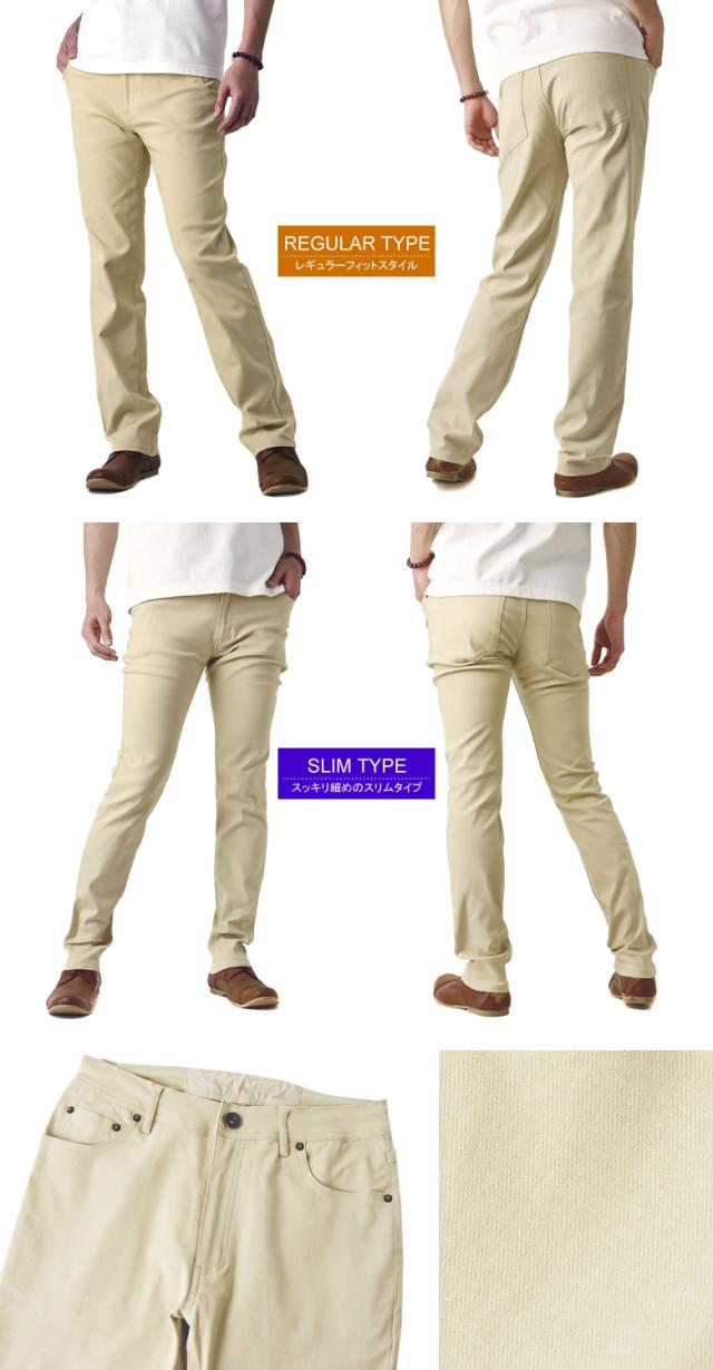 ★選べるシルエット!プレーンなレギュラーストレートと細身のスリムの2タイプがあります。