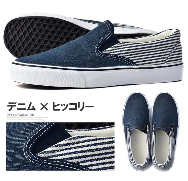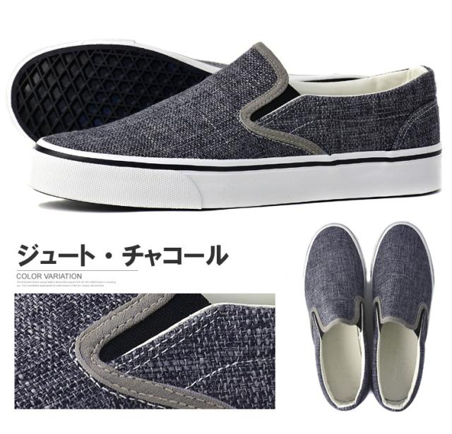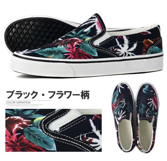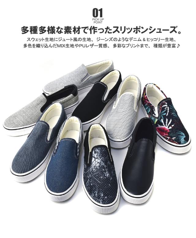スリッポン メンズ デッキシューズ スニーカー 靴 無地 デニム ジュート 花柄 カモフラ【S2I】