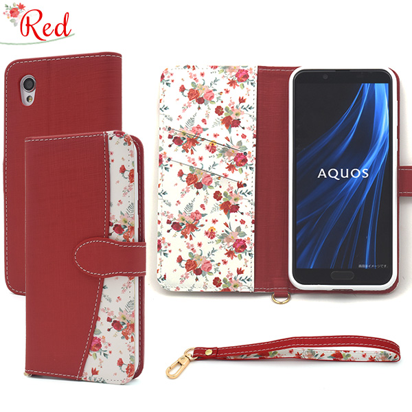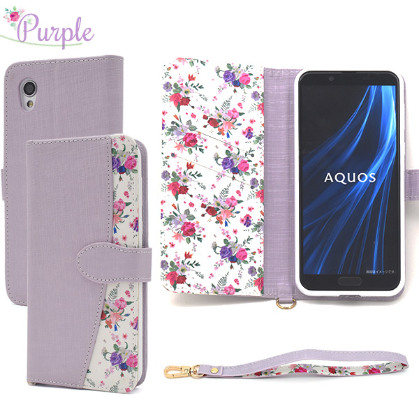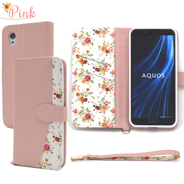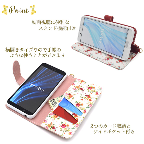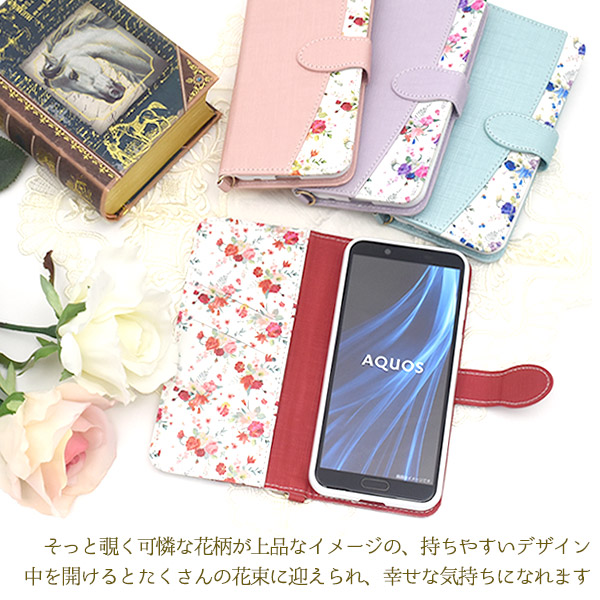 スマホケース AQUOS sense2 SH-01L SHV43 SH-M08 Android One S5 花柄 手帳型 ハッピーブーケ 花模様 おしゃれ 可愛い フェミニン 華やか 花柄 小花 フラワー お花 お洒落 スマホカバー ストラップ付き au携帯カバー au携帯ケース スマホケース スマートフォンケース