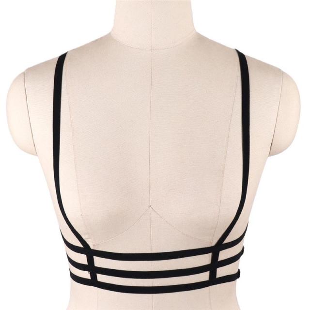 黒い伸縮性のあるポリエステル製のボンテージ風ハーネス。大人セクシーで下着のようなフェチなボディチェーンは個性的なボンデージファッションにぴったり。ユニークな女友達同士で楽しめるフェチなアイテム。