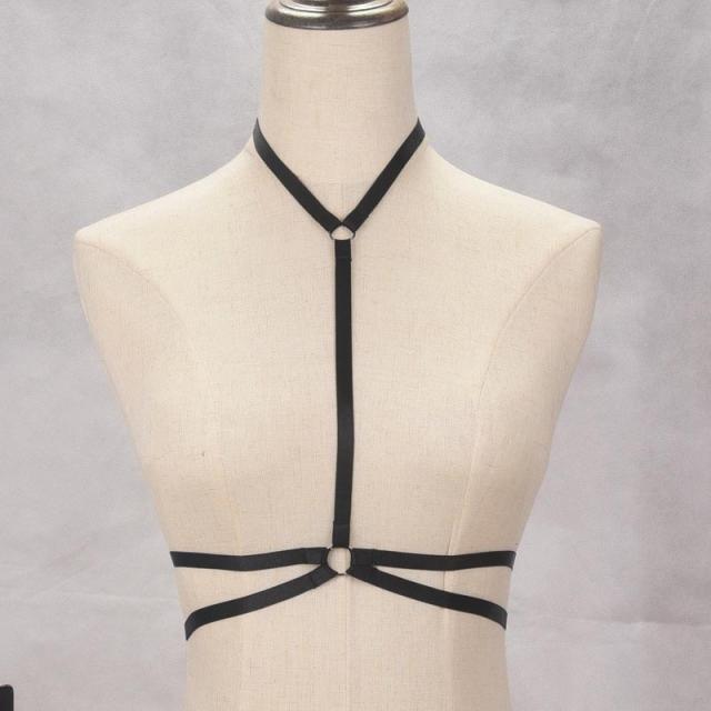 ボンデージ風 ブラックボディーハーネス (アヴァ) スレイブベルト ガーター ネックレス 首飾り ウエスト ベルト レディース 黒色 SM風 ゴシック コスプレ 仮装 オモシロ ハロウィン ボンテージ 拘束具風 チェスト ブラ 下着 胸 胸囲 バスト 補強 補正 ブラジャー