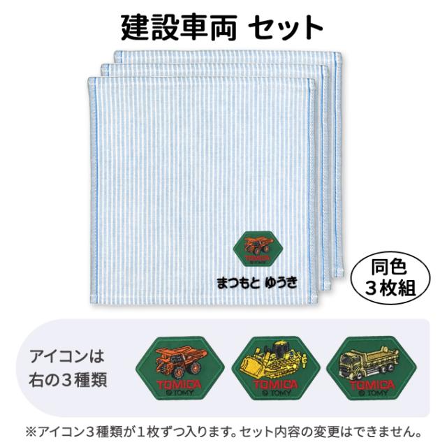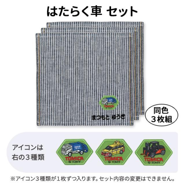 名入れ 刺繍 ハンカチタオル トミカ 3枚 名前 子供 男の子 女の子 ギフト ハンドタオル キャラクター OR