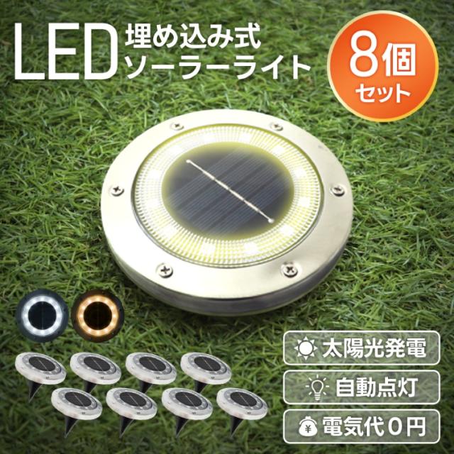 【8個セット】 ガーデンソーラーライト 埋め込み式 ソーラーライト LED ライト ガーデンライト 自動点灯 屋外 防水 おしゃれ ガーデン 防犯 照明 外灯 太陽光 電球色 昼光色 LEDライト 送料無料