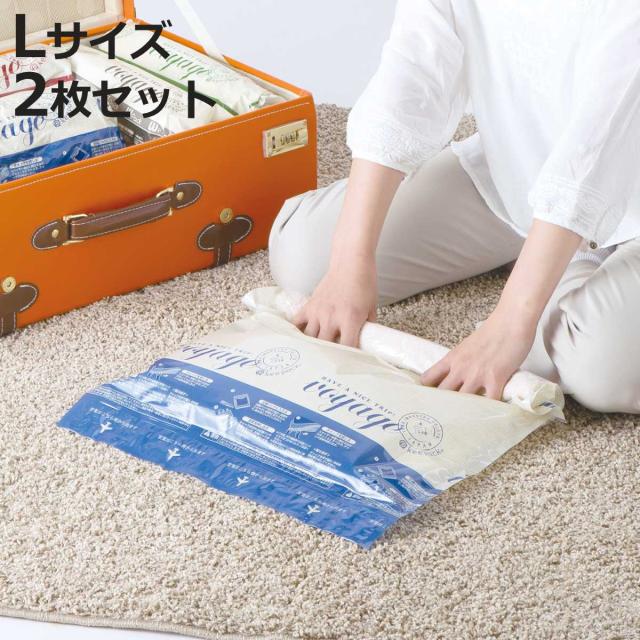 衣類圧縮袋 押すだけ衣類圧縮パック L 2枚入り ( 圧縮袋 衣類圧縮 衣類収納 45×55cm 衣類 手押し 手巻き 旅行 洋服 簡単 日本製 収納 出張 衣類収納袋 収納袋 服 トップス ボトムス クローゼット 衣装ケース ジム 引っ越し )
