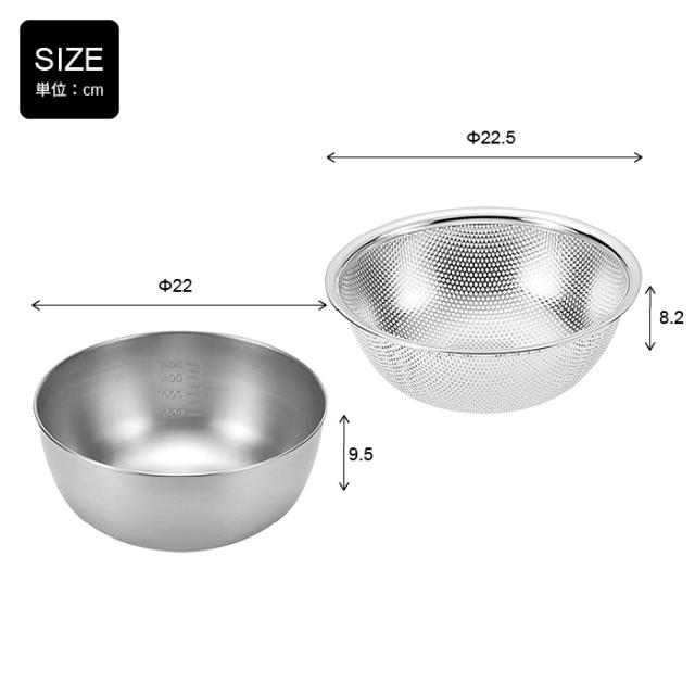 ■製品サイズ:約●ボウル21cmφ22×H9.5cm●パンチングボウル21cmφ22.5×H8.2cm