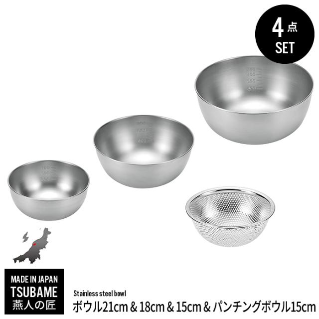 【値下げ】ボウル ザル セット ステンレス ボウル 15cm 18cm 21cm/パンチングボウル 15cm セット ざる ステンレスボウル 燕三条 燕 新潟