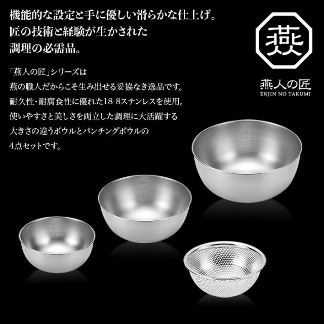 機能的な設計と手にやさしい滑らかな仕上げのボウル15cm、ボウル18cm、ボウル21cm&パンチングボウル15cmの4点セット。