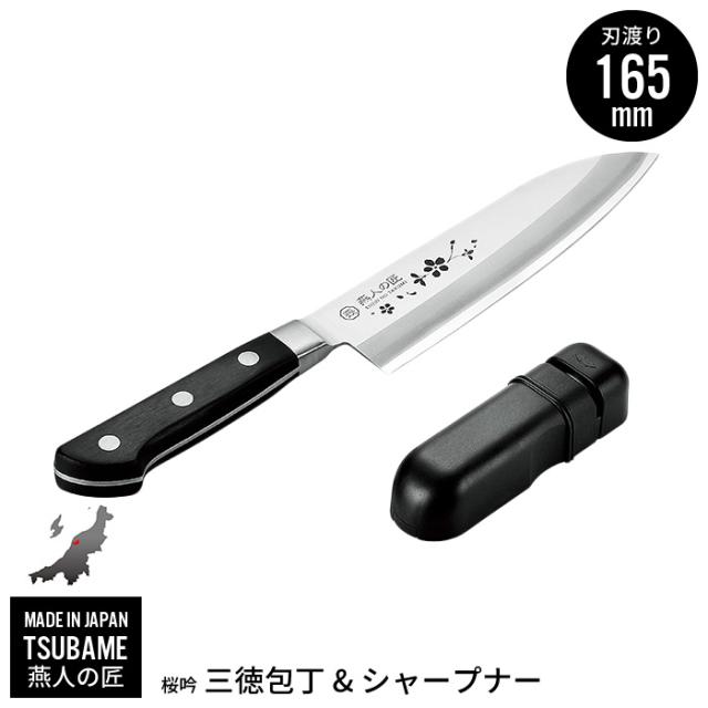 【値下げ】三徳包丁 日本製 16.5cm 包丁 刃渡り 16.5cm シャープナー付き ステンレス 文化包丁 本割込 プロ 切れ味 耐久性 燕三条 燕 新潟 人気