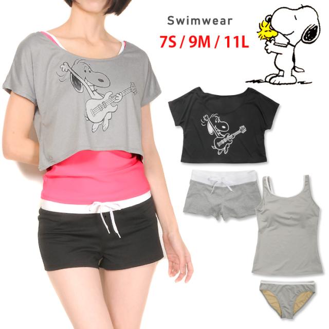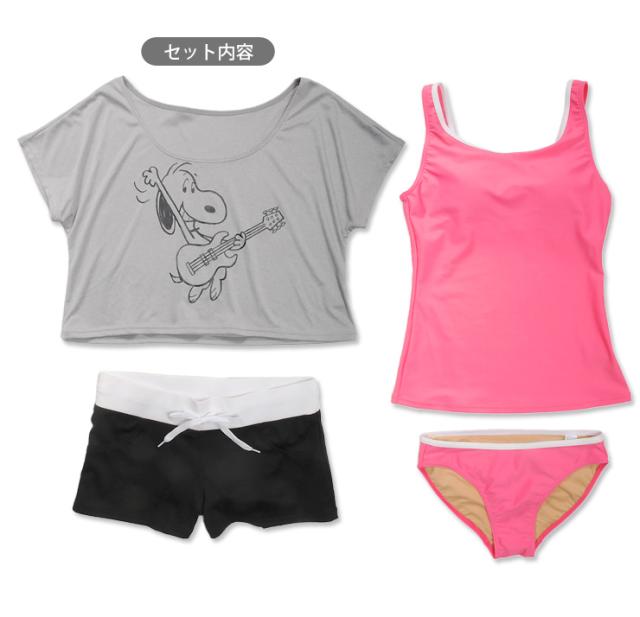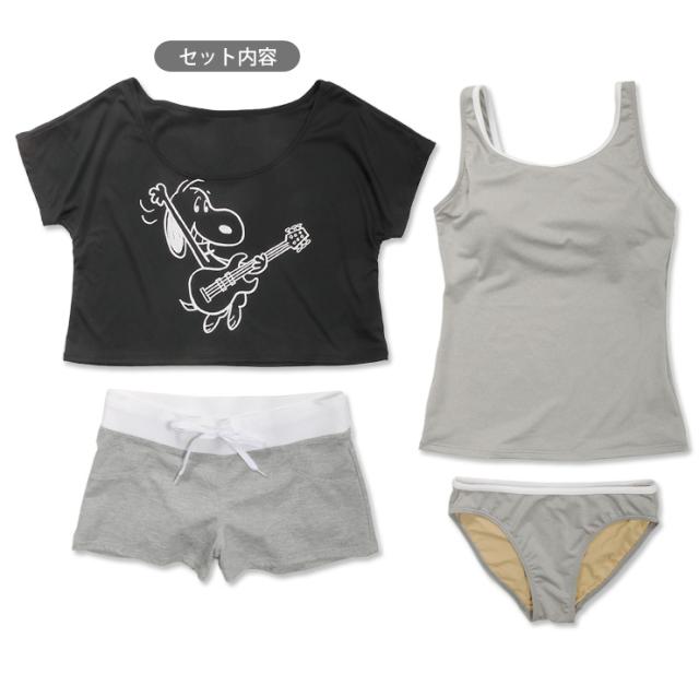【訳ありアウトレット】SNOOPY スヌーピー レディースタンキニ水着4点セット 225-302 キャラクター Tシャツ No.sw2478