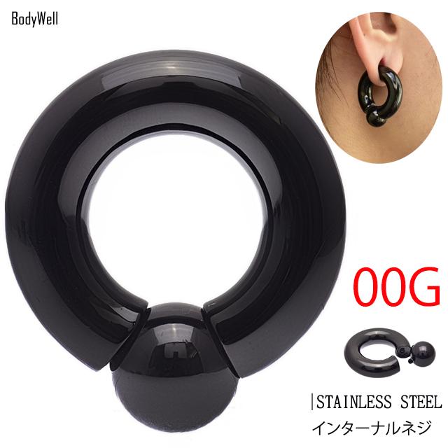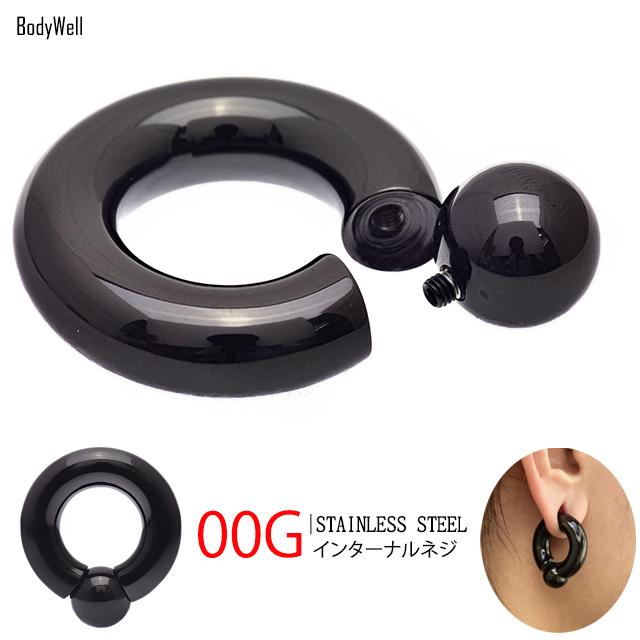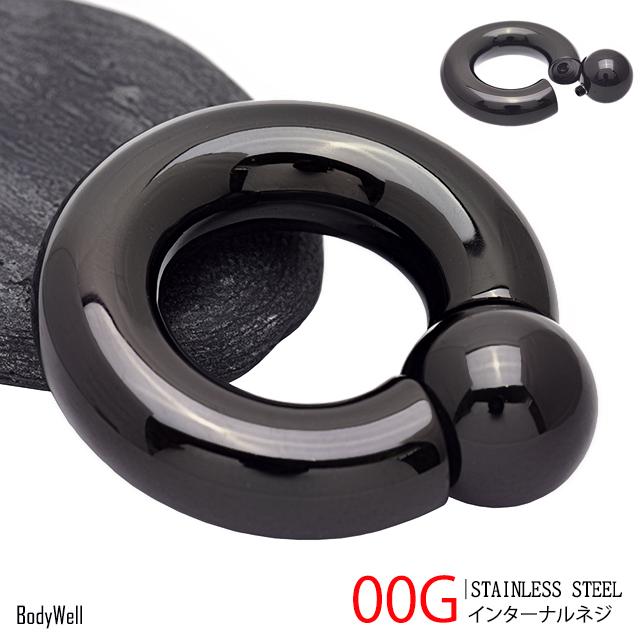 ボディピアス 00G ブラック ハイポリッシュ 選べる内径 付けやすい リングピアス インターナル キャプティブリングピアス