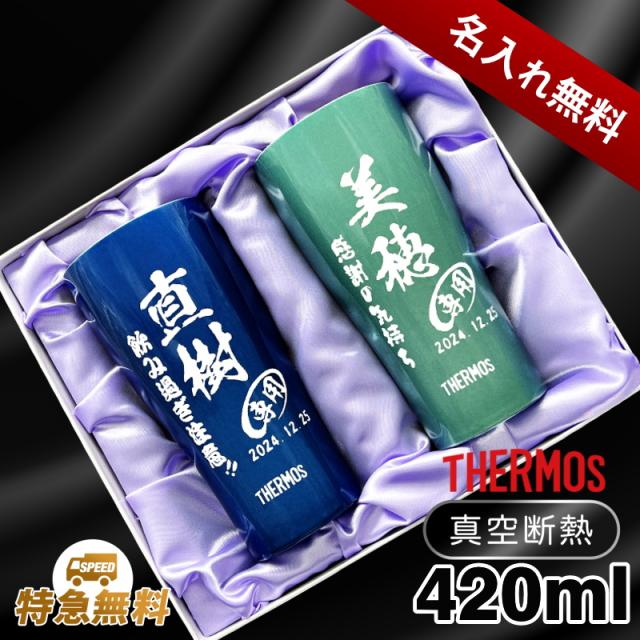タンブラー サーモス ペア 名入れ プレゼント 真空断熱 保温 保冷 ステンレス 名前入り 彫刻 刻印 グラス コップ 父の日 母の日 還暦祝い 退職 誕生日 結婚祝い 記念品 送別会 敬老の日 実用的 男性 女性 バースデー 送料無料 420ml 青 緑 セット 化粧箱 入り JDY-420C C16