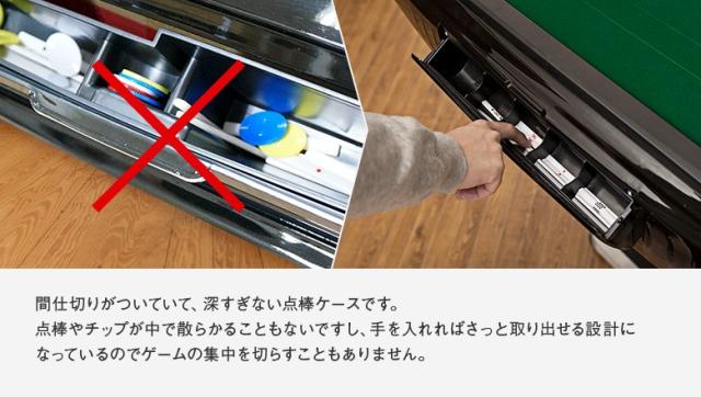 MJ-REVOシリーズの点棒ケースは使い勝手の良い日本仕様の浅型5分割タイプを採用しております。