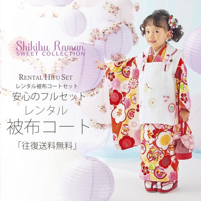 レンタル 式部浪漫 ブランド 被布コート フルセット 貸衣装 3歳 三歳 貸衣装 七五三 赤 白 梅