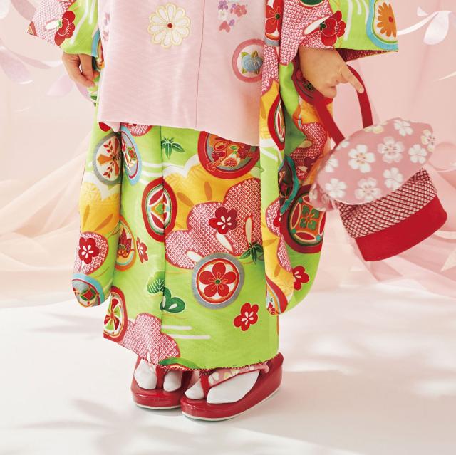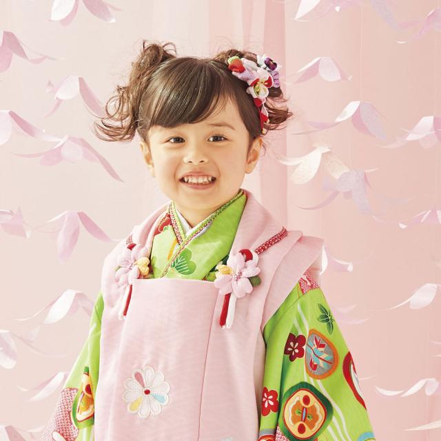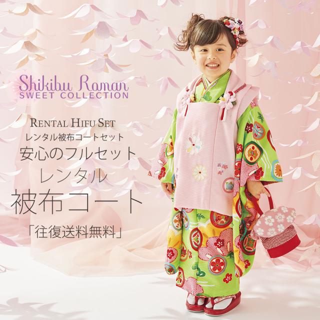 レンタル 式部浪漫 ブランド 被布コート フルセット 貸衣装 3歳 三歳 貸衣装 七五三 黄緑 ピンク 松