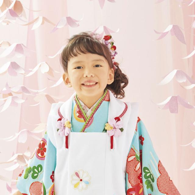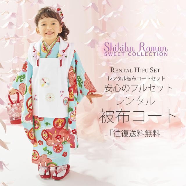 レンタル 式部浪漫 ブランド 被布コート フルセット 貸衣装 3歳 三歳 貸衣装 七五三 水色 白 松