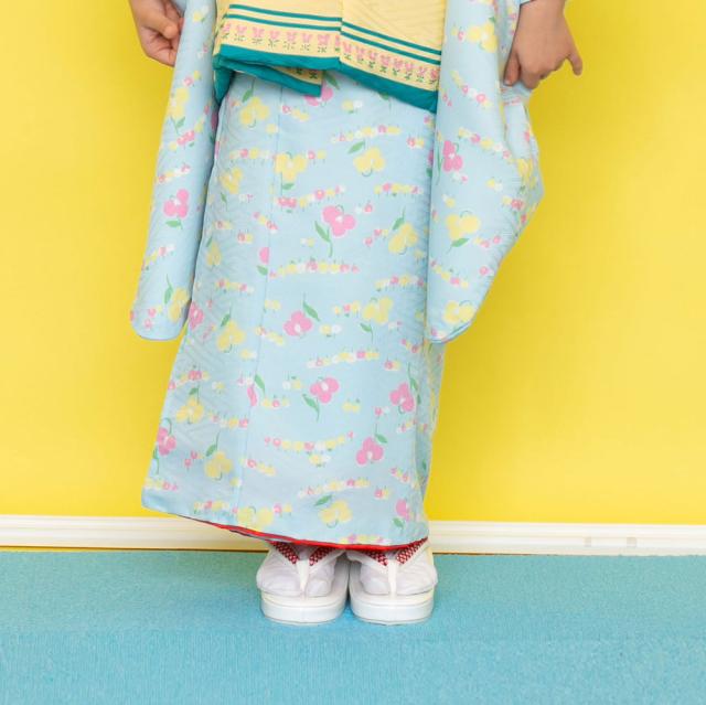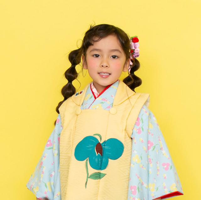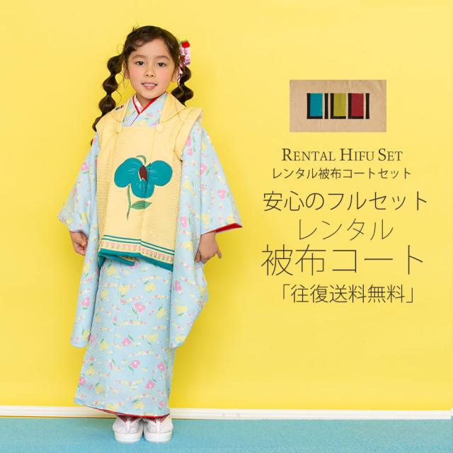 レンタル LILI ブランド 被布コート フルセット 貸衣装 3歳 三歳 貸衣装 七五三 小花 水色 黄色