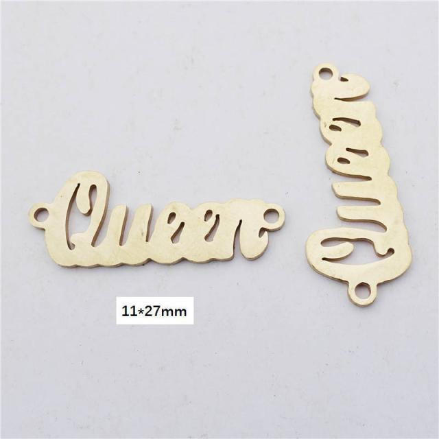 ゴールドQUEENコネクトステンレスパーツ 1個販売 クィーン 女王 英語 アルファベット クイーン 文字 金色 ジョイントパーツ コネクター 繋ぐ 2穴 ブレスレット用 ウエストチェーン用 アンクレット用 丸環 マルカン チェーンをつなぐ DIY 手作り ハンドメイド 鎖