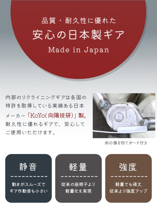 大事な内部ギアは、世界でも活躍する実績ある日本メーカー「KoYo」の日本製!