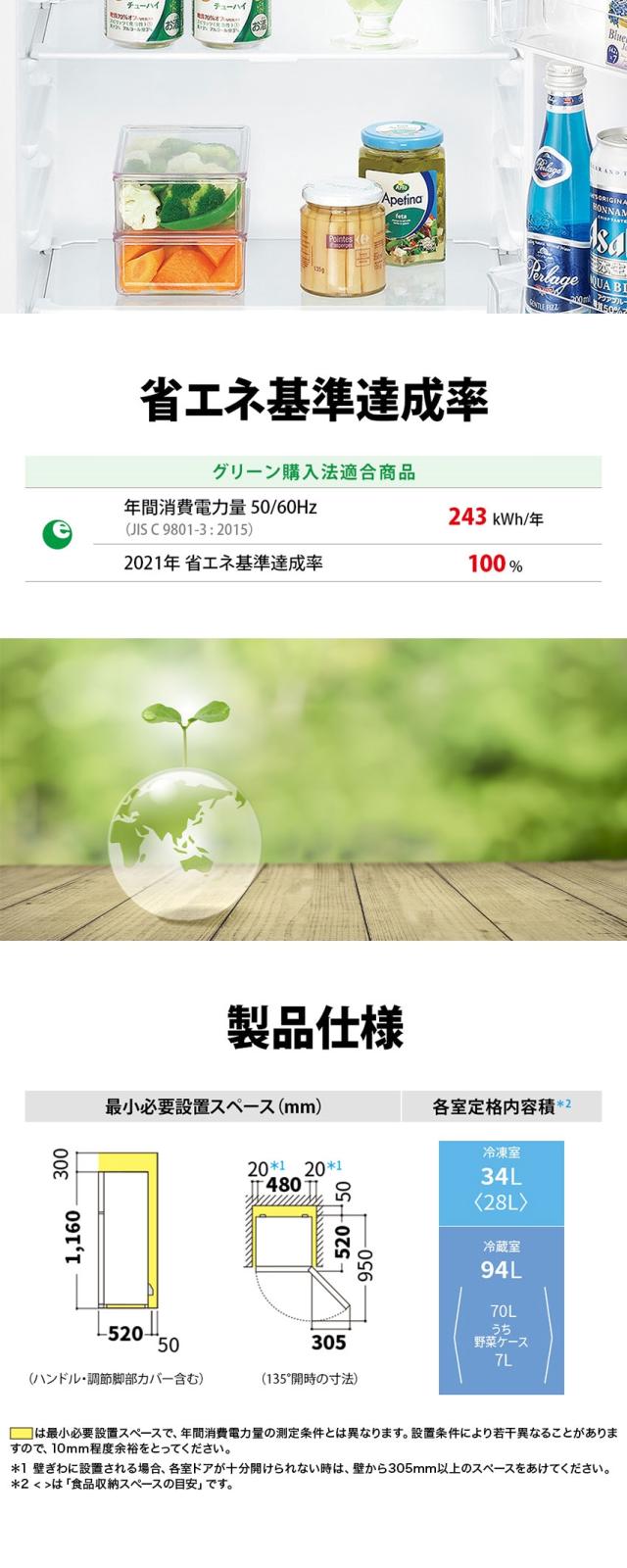* 年間消費電力量(50/60Hz):243kWh/年