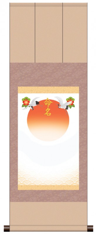 三段表装命名掛軸 吉祥旭日 ピンク