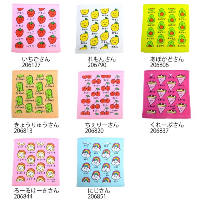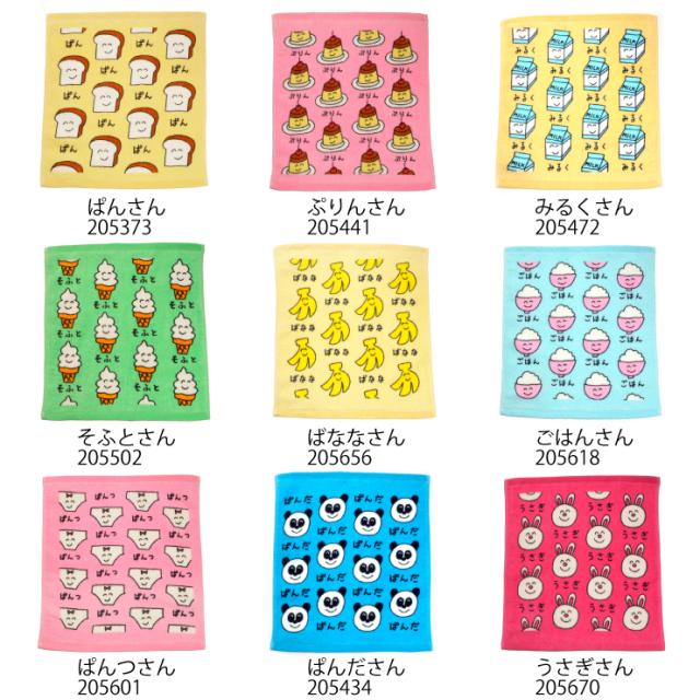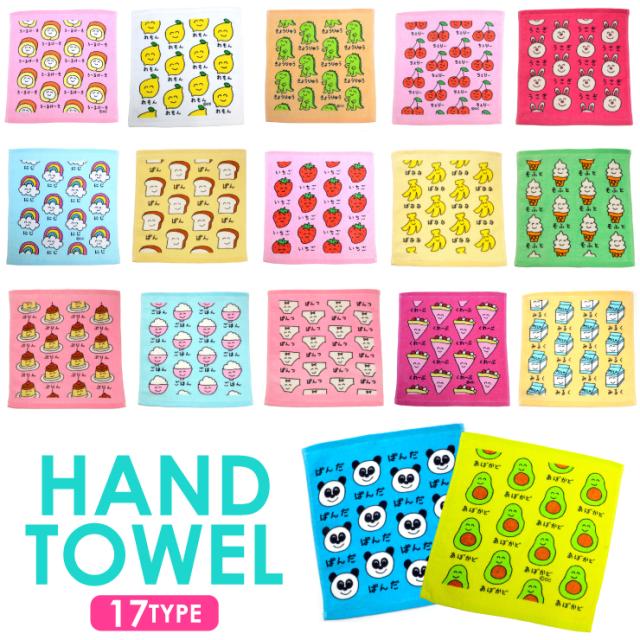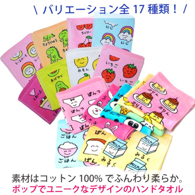 【2枚までメール便280円対応】ハンドタオル プリント 17種類 タオル おもしろ雑貨 生活雑貨 35×34cm【キャラクター 遠足 子供用 通園 通学 入学式 キッズタオル】┃