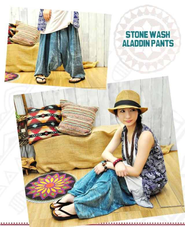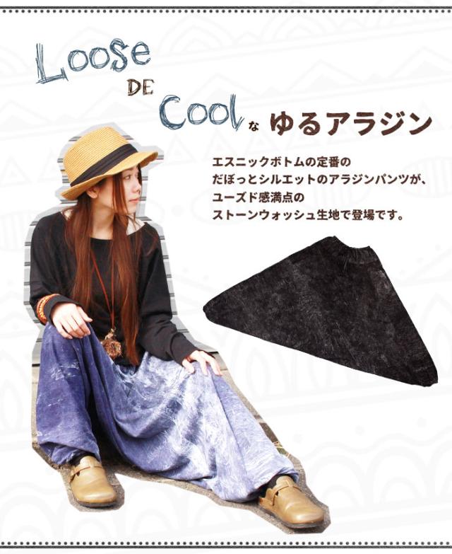 エスニックボトムの定番のだぼっとシルエットのアラジンパンツが、