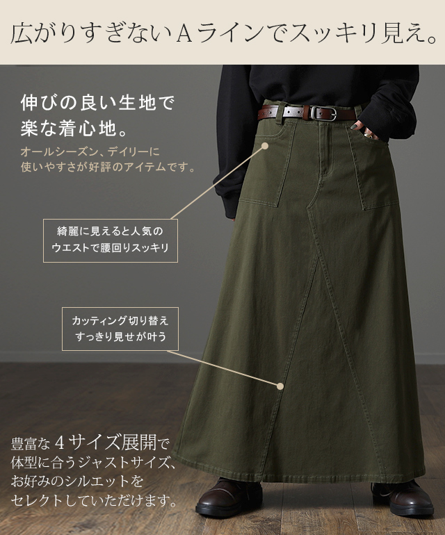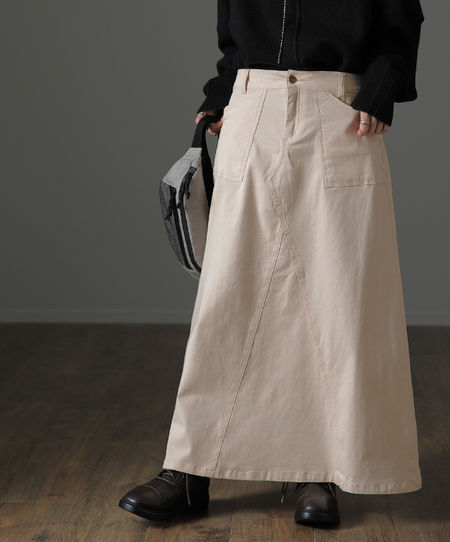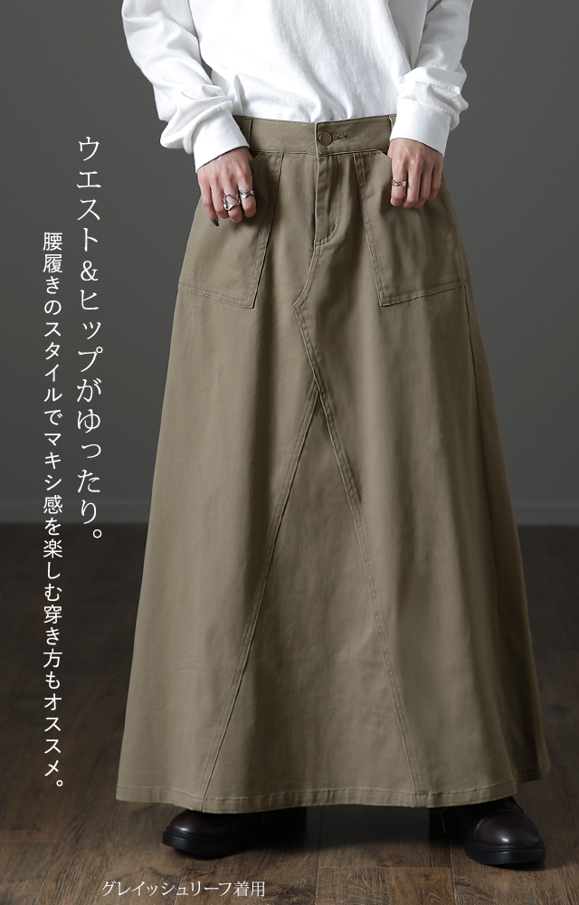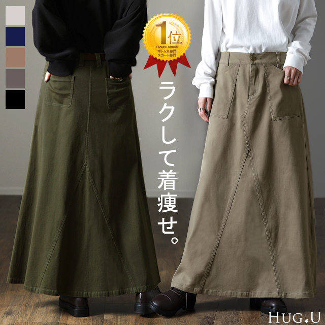 チノスカート カーゴスカート ボトムス ロング丈 ロング丈スカート マキシ丈 マキシ丈スカート 長い 長め Aラインスカート アンクル丈 10分丈 12分丈 リメイク風 ステッチ ポケット ポケット付き ロングシーズン シーズンレス オールシーズン ストリート 無地 ゆったり ゆる ゆったりサイズ ゆるカジ ゆるい ゆるファッション ラクチン らくちん 楽ちん 楽 動きやすい レディースファッション 旬 トレンド レイヤード 重ね着 重ね レイヤードコーデ 体型カバー 大きいサイズ プラスサイズ ビッグ ビック big ビックシルエット ビッグシルエット ビックサイズ ビッグサイズ オーバーサイズ オーバー 着痩せ 大き目 大きい 大きめ フリーサイズ フリー S M L LL 2L XL 3L XXL LLL ランチ デート お出かけ キャンプ アウトドア フェス リゾート ビーチ 海 旅行 飛行機 カジュアル ナチュラル 大人カジュアル ベーシック オフィス オフィスカジュアル テレワーク リモートワーク リモート オンライン飲み会 おうち時間 お家時間 着回し 母の日 プレゼント ギフト 贈り物 クリスマス シンプル 大人 大人カジュアル オトナ 女性 綺麗 綺麗目 きれい キレイ キレイめ キレイメ きれいめ 高見え 上質 上品 20代 30代 40代 50代 おしゃれ お洒落 オシャレ 可愛い かわいい カワイイ カッコいい 格好良い カッコイイ ブラック 黒 黒色 カーキ ミドリ 緑 緑色 ベージュ ネイビー 紺 紺色 藍 藍色 トープ アッシュトープ ライトグレー グレー チャコール 灰 灰色 アイボリー ロハス ロハスアイボリー 白 白色 グレイッシュ グレイッシュリーフ 春 夏 秋 冬 春夏 秋冬 HUG.U HUGU ハグユー はぐゆー