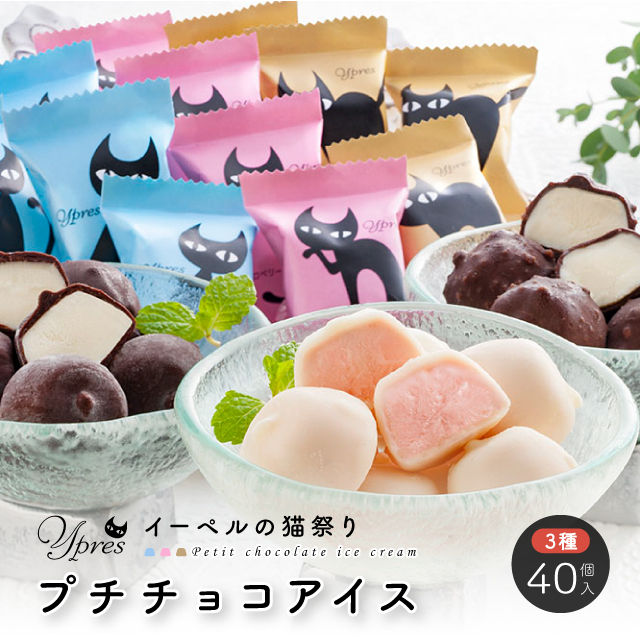 ひとくち アイス 個包装 イーペルの猫祭り プチチョコアイス バニラ クランチ ストロベリー 計40個 大容量