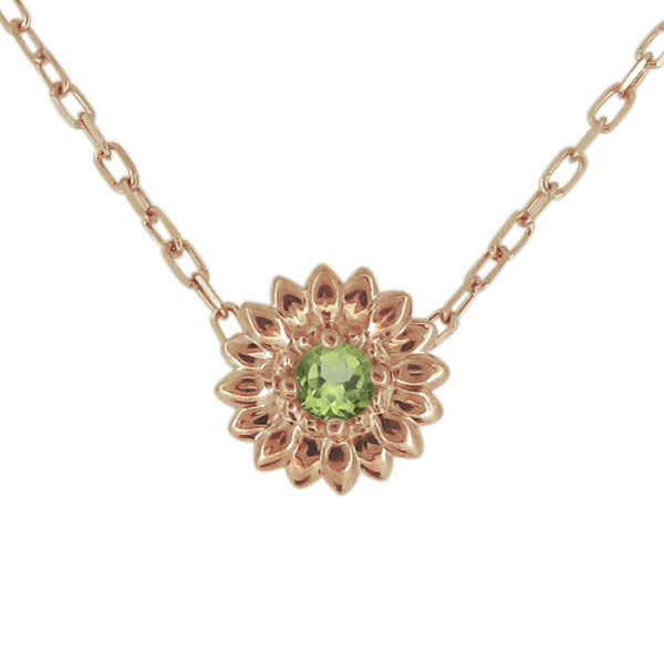 18金 ネックレス 一粒 ピンク イエロー ヒマワリ ペリドット 花 レディースペンダント