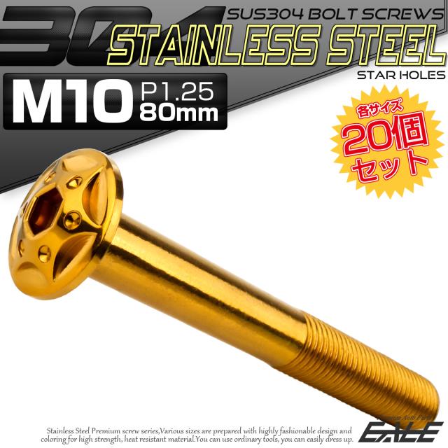 20個セット ボタンボルト スターホールヘッド M10×80mm P1.25 フランジ付 六角穴 SUS304 ステンレス ゴールド TR0704-20SET